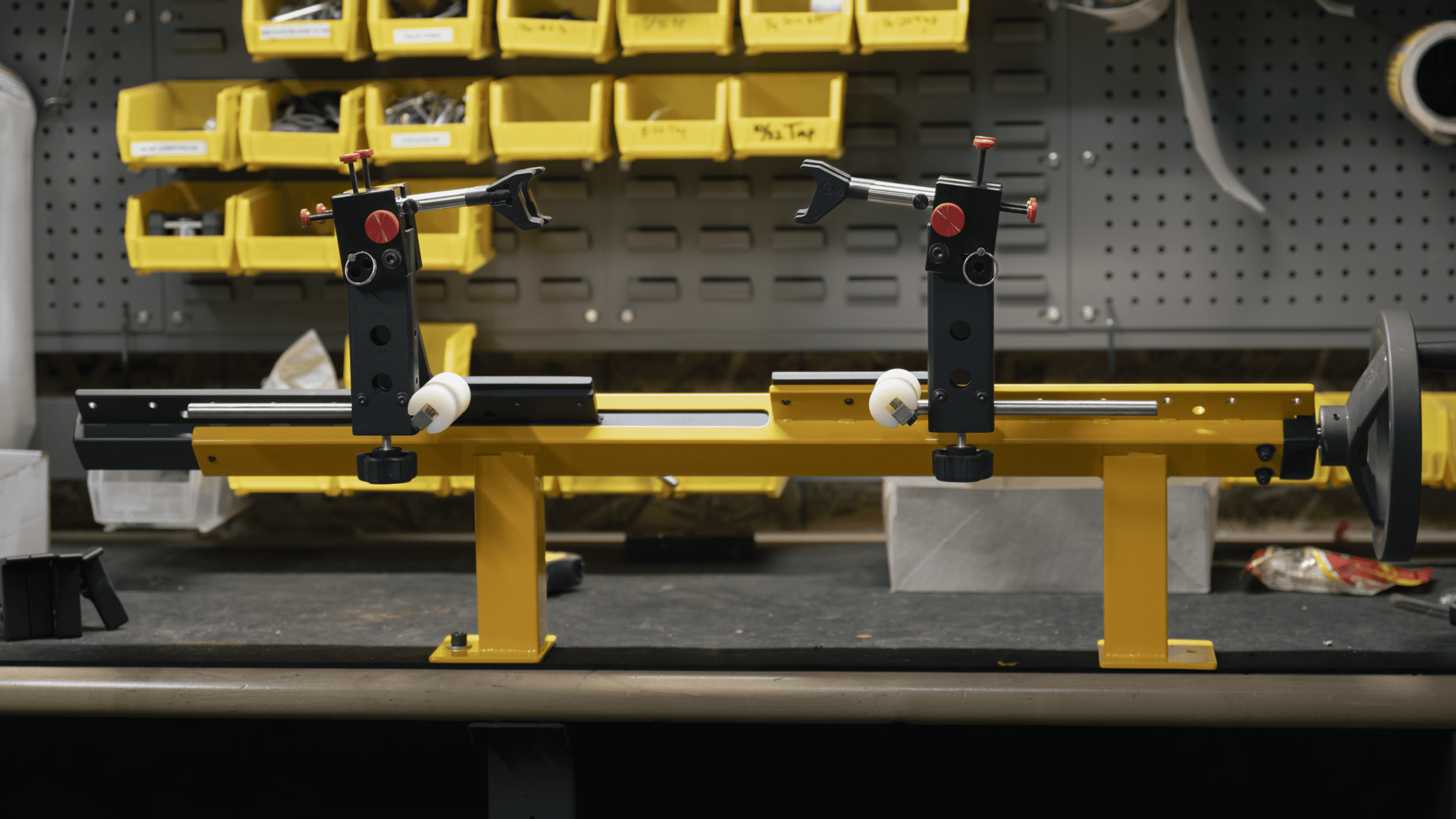 The Crossbow Master Plus is designed to cover the needs of pressing crossbows. It allows the bow technician to be close to the handwheel when working on a crossbow while operating the bow press.